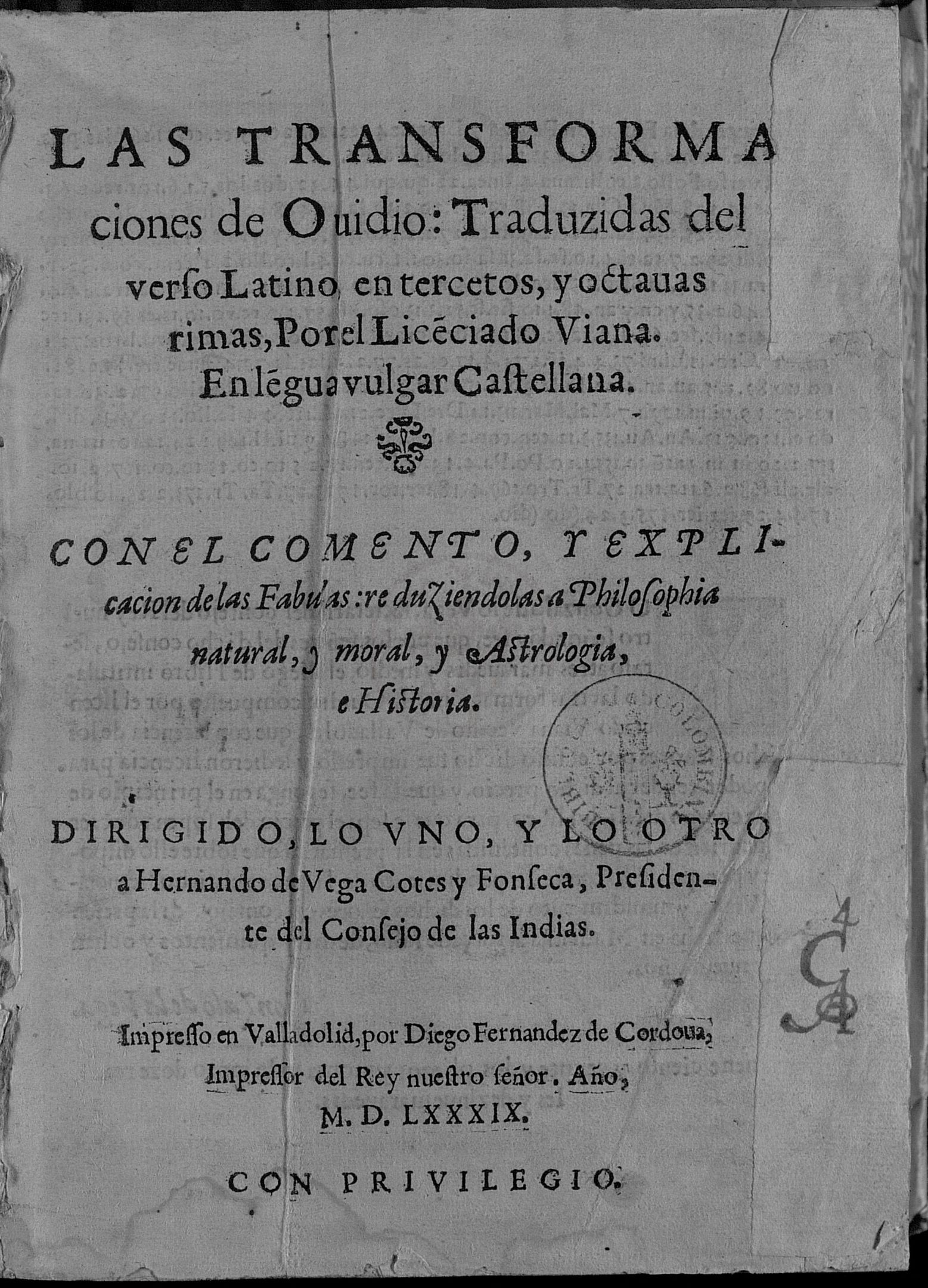 Biblioteca Capitular y Colombina Sevilla >Metamorfosis.Viana.Córdoba.Valladolid.1589 .